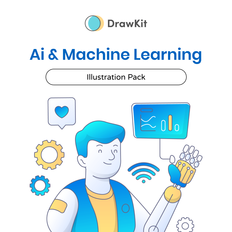 An illustration pack about artificial intelligence, machines, technology, services, and many more.