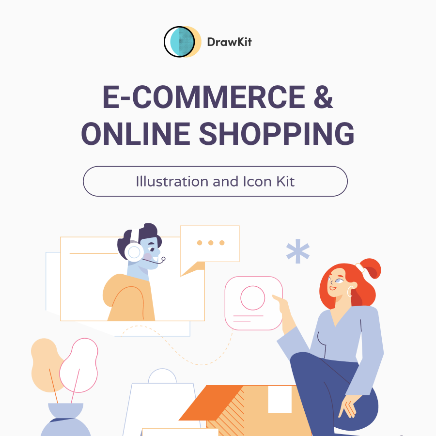 An illustration and icon bundle kit about e-commerce store, online shopping, reviews, delivery and many more.